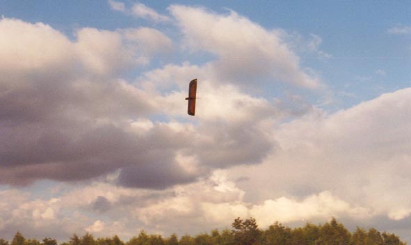 Das Modell, eigentlich nur als Versuchsstudie konzipiert, entwickelte sich nun dank der guten Steuereigenschaften und nach Einbau eines E-Antriebes zum brauchbaren Thermikflieger. Ein Nachteil dieser Art der Steuerung sei aber nicht verschwiegen: Ein Seitenleitwerk hat nicht nur die Aufgabe die Richtung zu stabilisieren, sondern auch eine Gierdämpfung zu bewirken - dies kann der Sensor natürlich nicht ! Dies führte manchmal zu seltsamen taumelartigen Flugzuständen welche mitunter schwierig auszusteuern waren. Abhilfe ist hierbei nur durch den Einsatz eines Kreisels oder durch eine konstruktive Gierdämpfung etwa in Form einer gebogenen Fläche (Weltenseglerknick) möglich. Alles in allem konnte ich mit dieser Versuchskonstruktion viele wertvolle Erkenntnisse zum Steuerverhalten von Nurflügel gewinnen. Den Bau von naturgetreuen Vogelmodellen stand nun nichts mehr im Wege.
